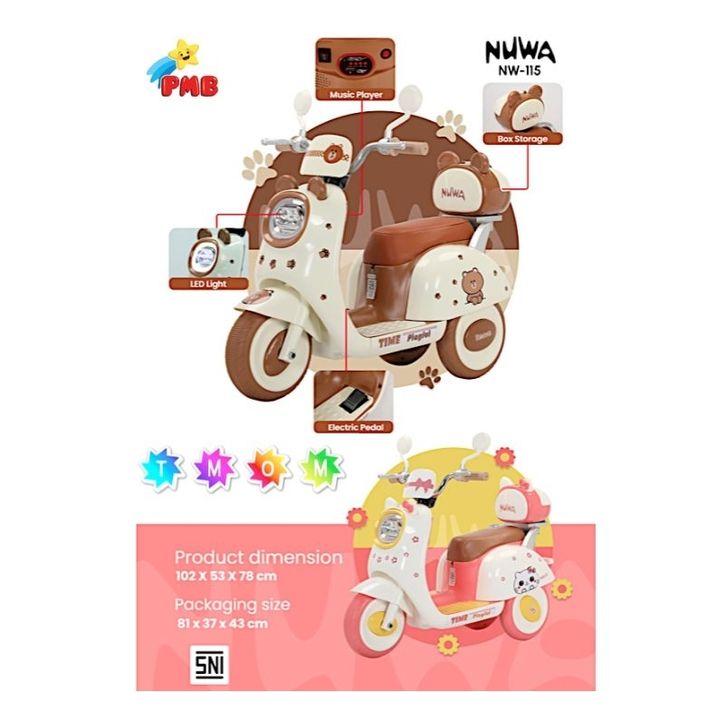 PROMO Motor Aki Anak Vespa PMB Nuwa NW-113 NW113 Nuwa NW-115 NW115 Nuwa NW-201 NW201 Musik Lampu
