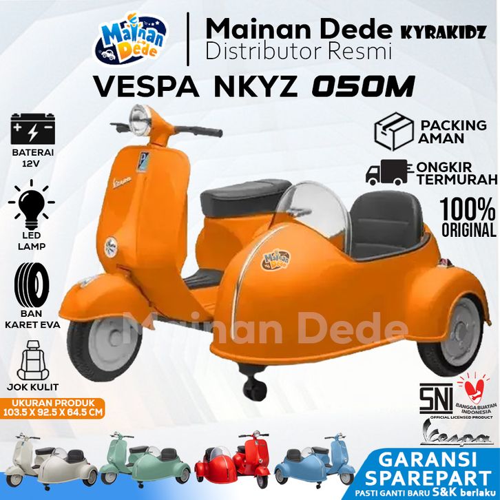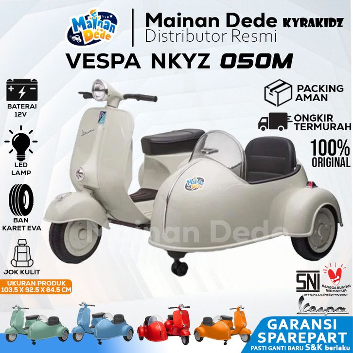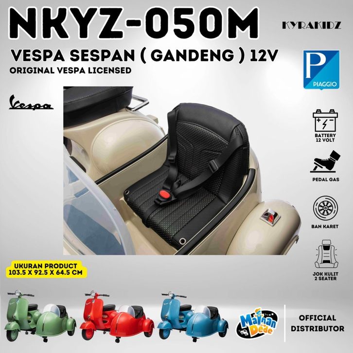 PROMO Mainan Motor Aki Anak Vespa NKYZ 050M Licensed Vespa Sespan gandeng 12V