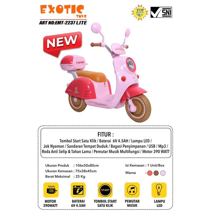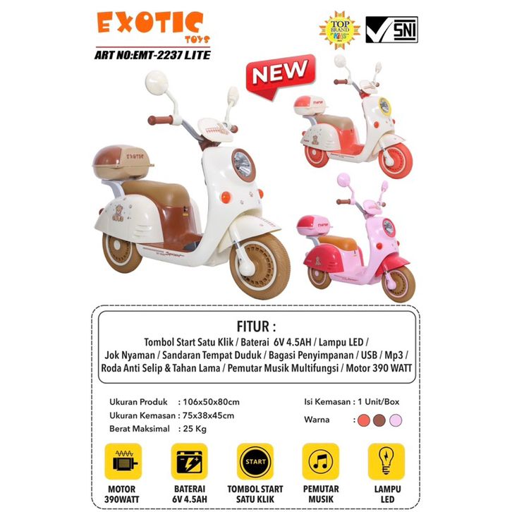 PROMO Motor Aki Anak Kendaraaan Mainan NUWA NW115 NW-115 EXCOTIC EMT2237 EMT-2237 Cas Listrik
