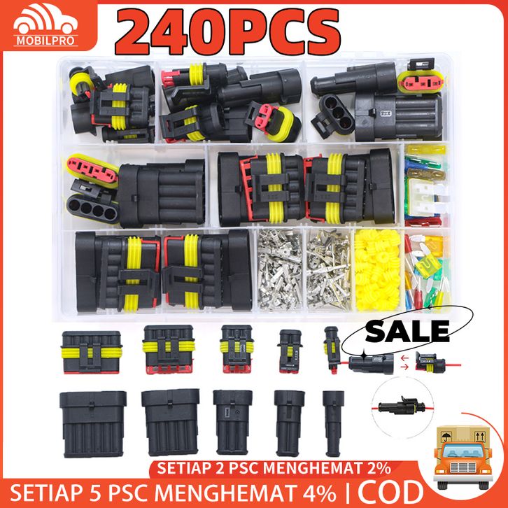 PROMO 240PCS Socket Konektor Kabel Mobil Waterproof Lengkap dengan Skun Sambungan Kabel Konektor