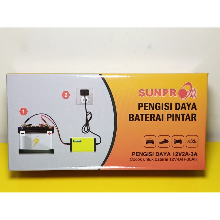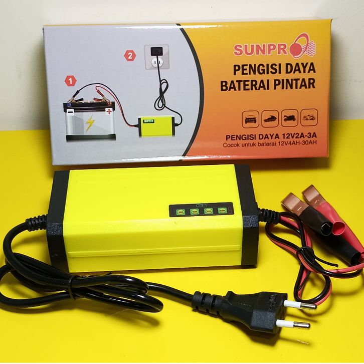 PROMO Adaptor Aki Sunpro 12V2A-3A Battery Charger High Quality 12v4AH-30Ah / aki Mobil Motor