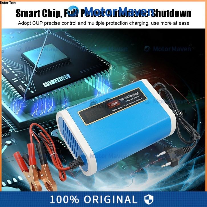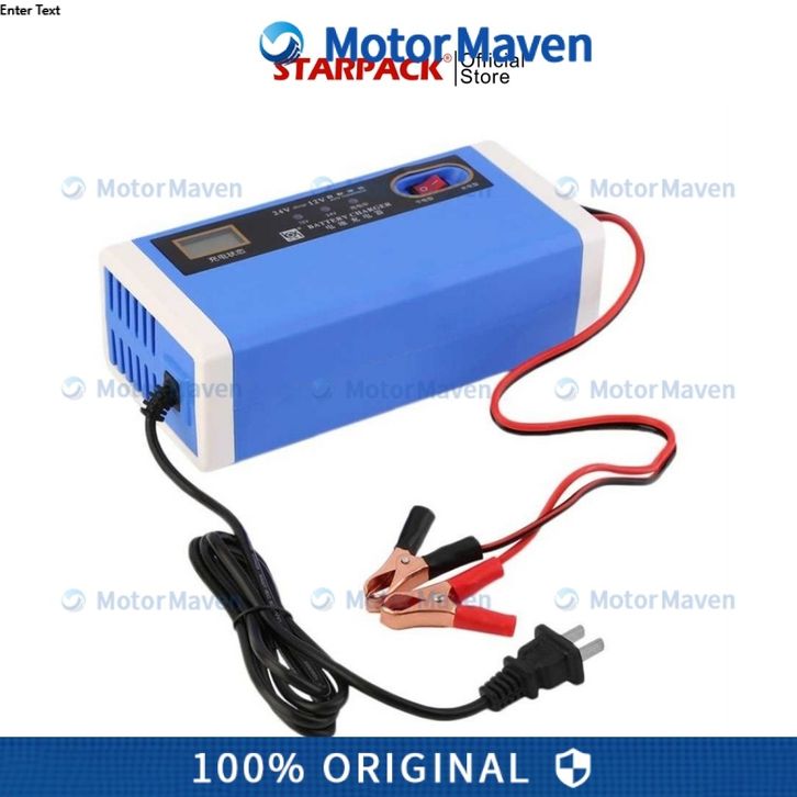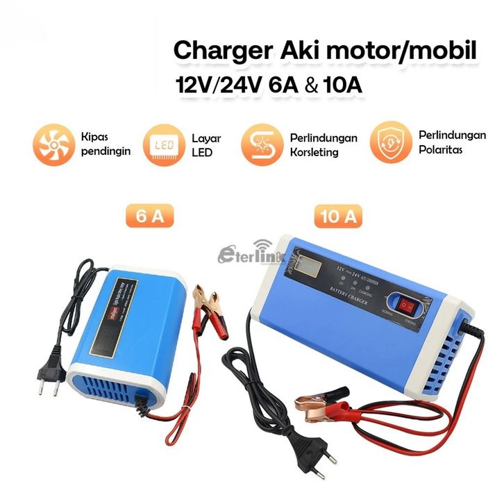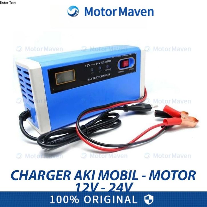 PROMO NEW Premium Charger Aki Mobil Motor Lead Acid 12-24V 10A with LCD -BLUE