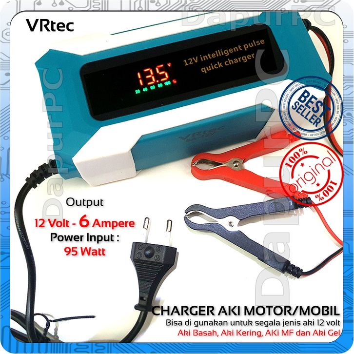 PROMO VRtec Charger Aki 12V 6A DigitaI Intelligent Automatic Mobil Motor