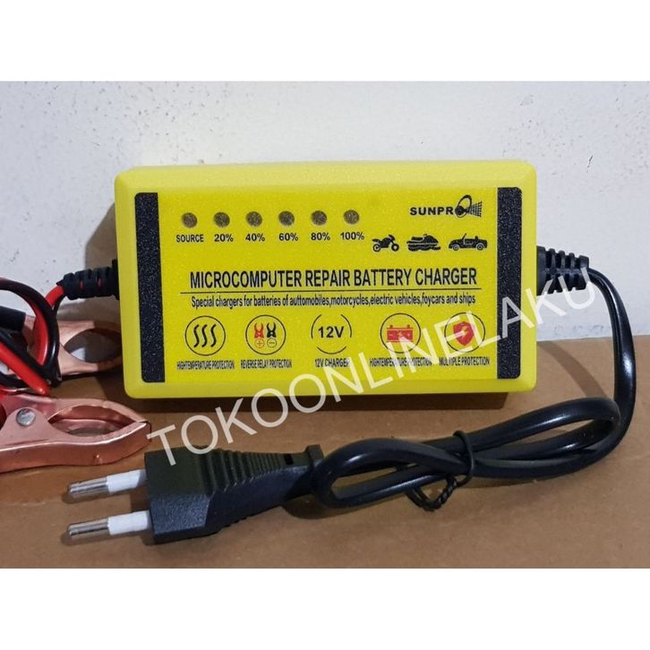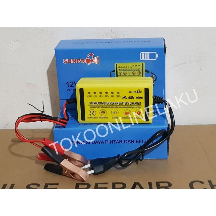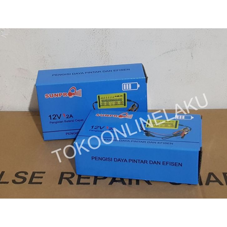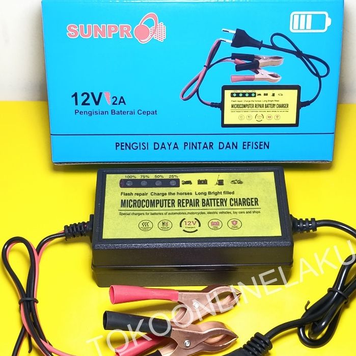 PROMO Pengisi Daya Aki Sunpro 12V 2A / Charger Aki Mobil, Motor, Aman, dan Hemat Energi