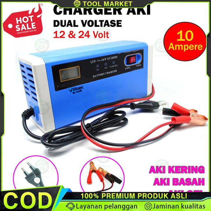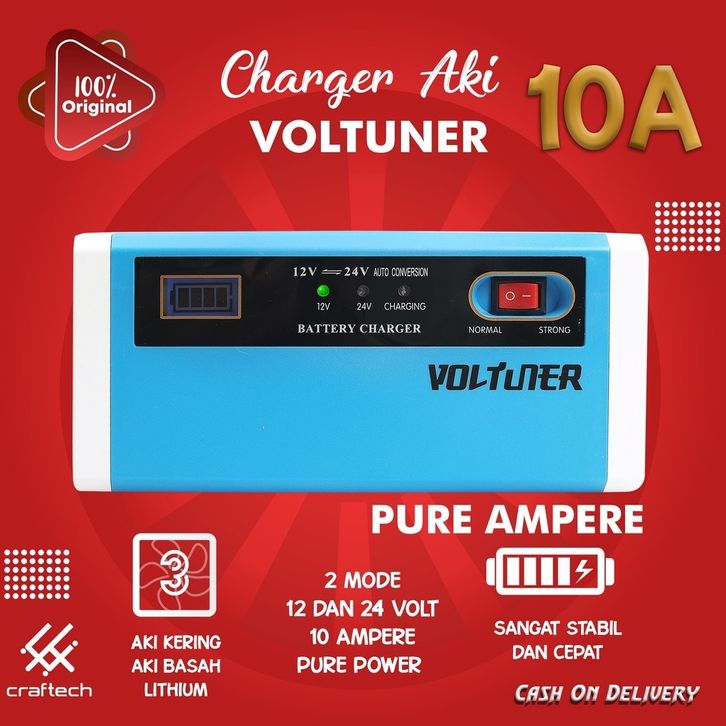 PROMO VOLTUNER Charger Aki 12 v 24 v 10A Ampere Cas Aki Casan Aki Mobil Truck Charger Aki Mobil