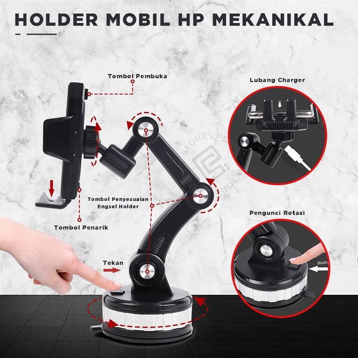 PROMO Holder Mobil HD61 4in1 Phone Car Holder Handphone Dashboard Kaca Superkuat