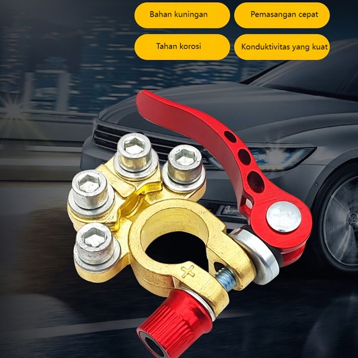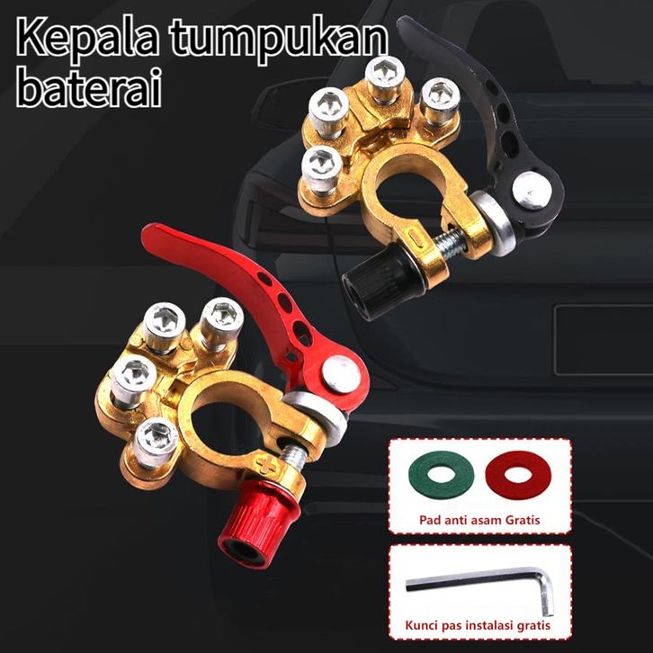 PROMO Terminal Kepala Aki Mobil Bahan KUNINGAN Klem Accu Mobil Tembaga Murni Aki Terminal Tutup 2pcs