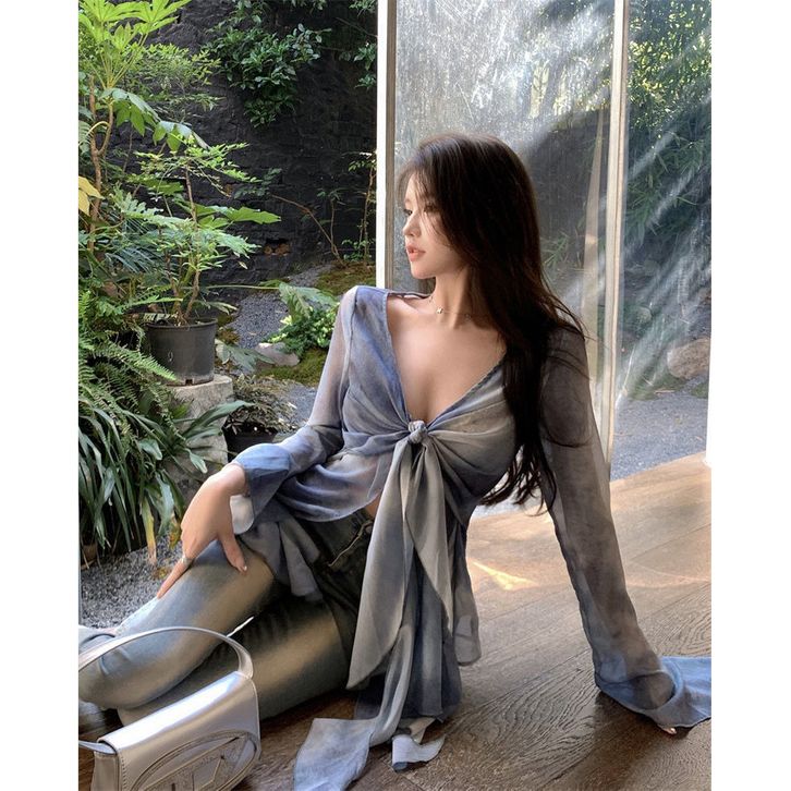 Kemeja Sifon ready || YAHAO- Sifon/Slim fit/gaya Perancis/leher V/lengan panjang/kaos/blus