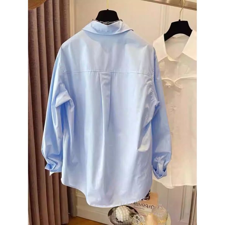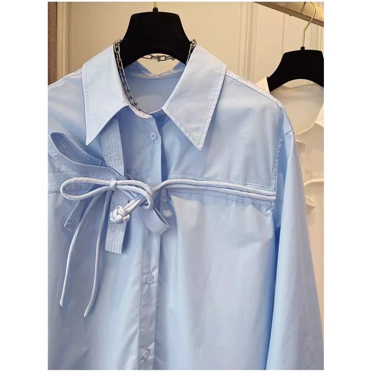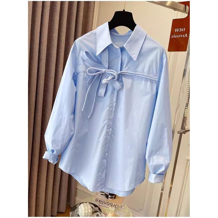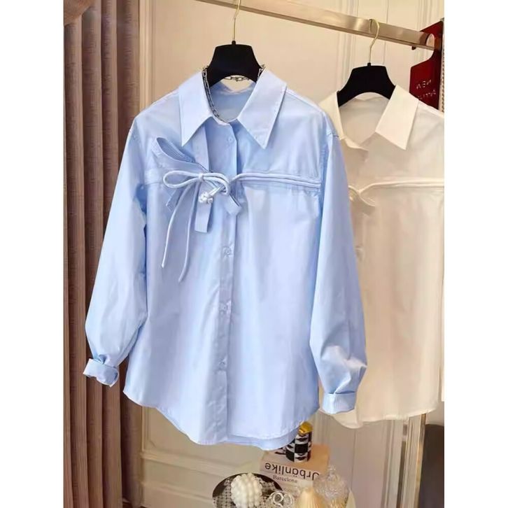Kemeja Sifon Atasan Wanita | Kemeja Lengan Panjang | Kerah Collar | Tali Depan Adjustable | Original By | Warna Biru |