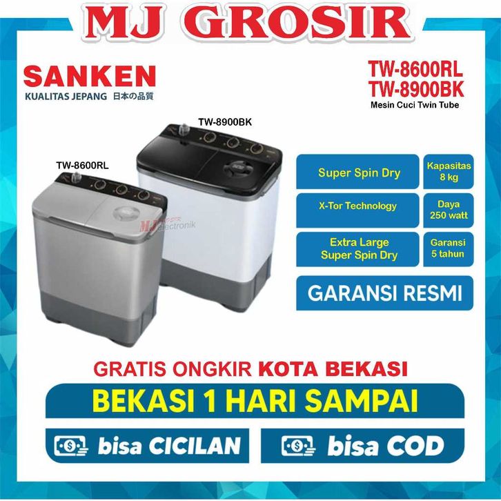MESIN CUCI SANKEN TW 8900 BK / TW 8600 RL 8KG 2 TABUNG X-TOR TECHNOLOGY