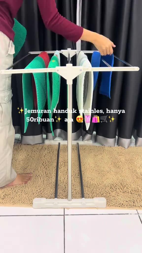 Jemuran Handuk Stainless Lipat Anti Karat Rak Gantungan Baju Stand Hanger Kamar Mandi Minimalis
