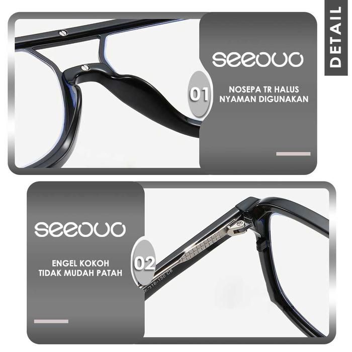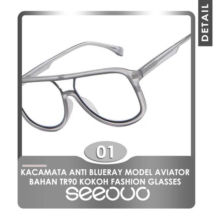 Kacamata Pria Wanita // Kacamata Anti Radiasi Blueray Aviator Bisa Minus TR90 Ringan 1010 Seeouo // Terlaris