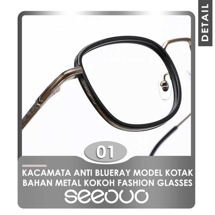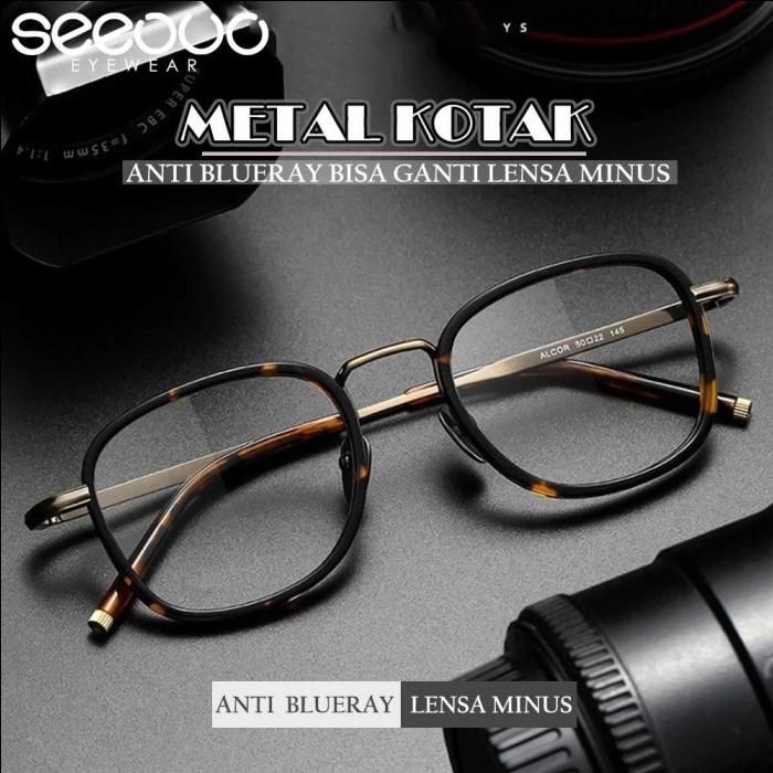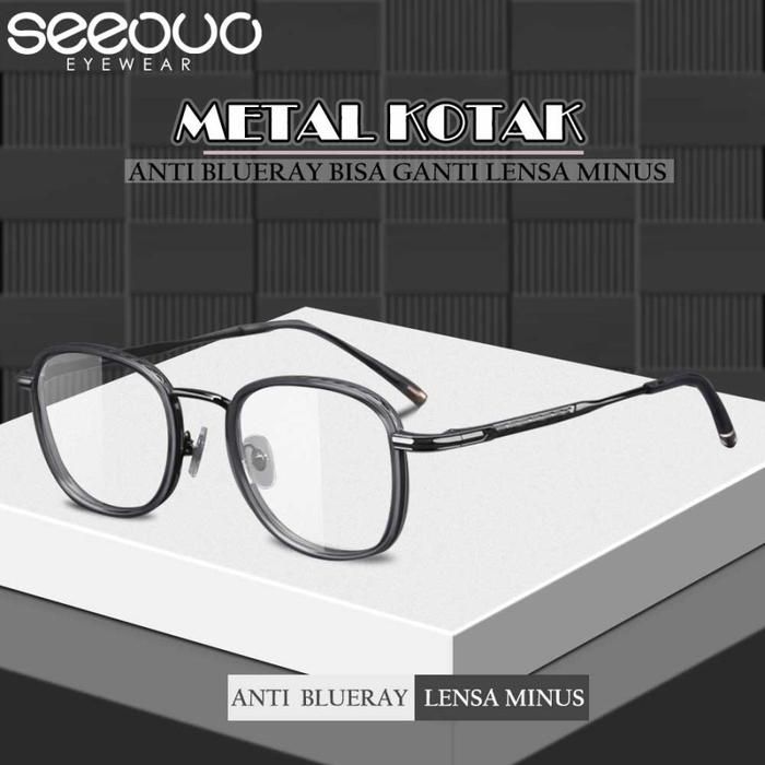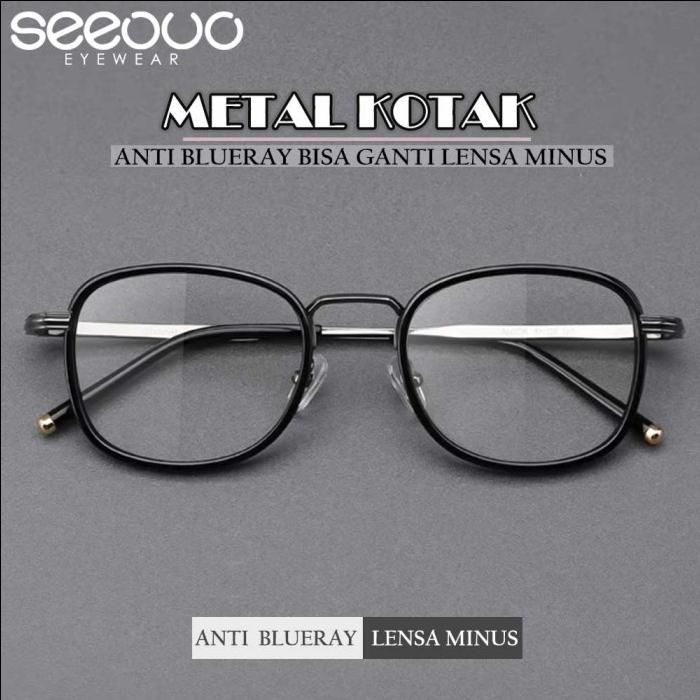 Kacamata Pria Wanita // Kacamata AntI Radiasi Blueray Bisa Minus Bentuk Kotak Trendy Metal Ringan 1014 // Terlaris