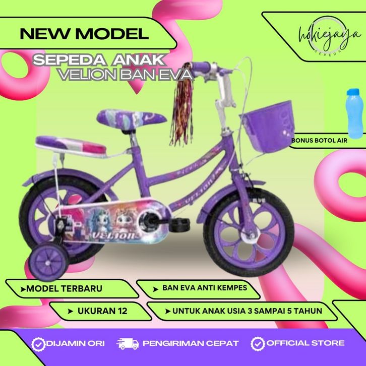 PROMO SEPEDA MINI 12 VELION EVA BAN BUSA UNTUK ANAK bonus BOTOL usia 2-4 TAHUN Dengan tongkat setir