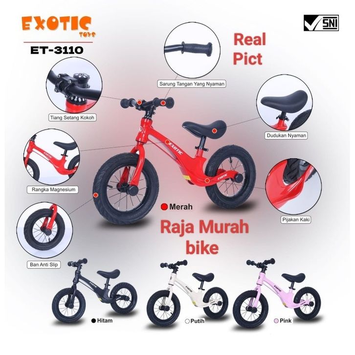 PROMO Sepeda Balance Bike Exotic ET3110 Magnesium Balance Bike Push Bike Exotic 3110 Ban Pompa