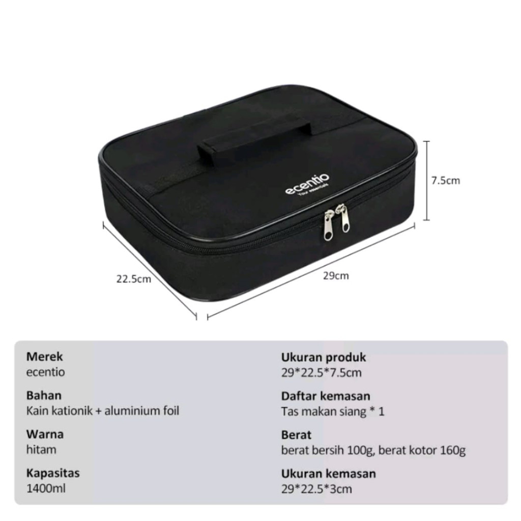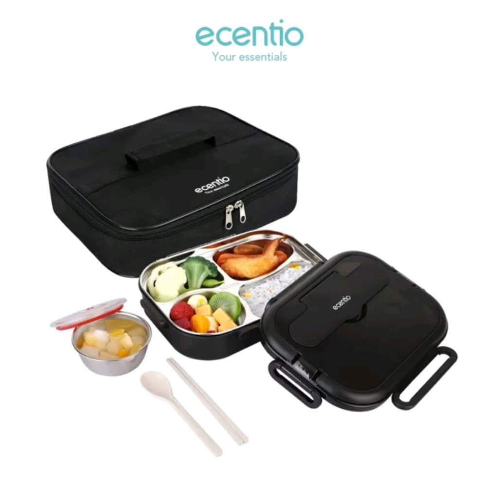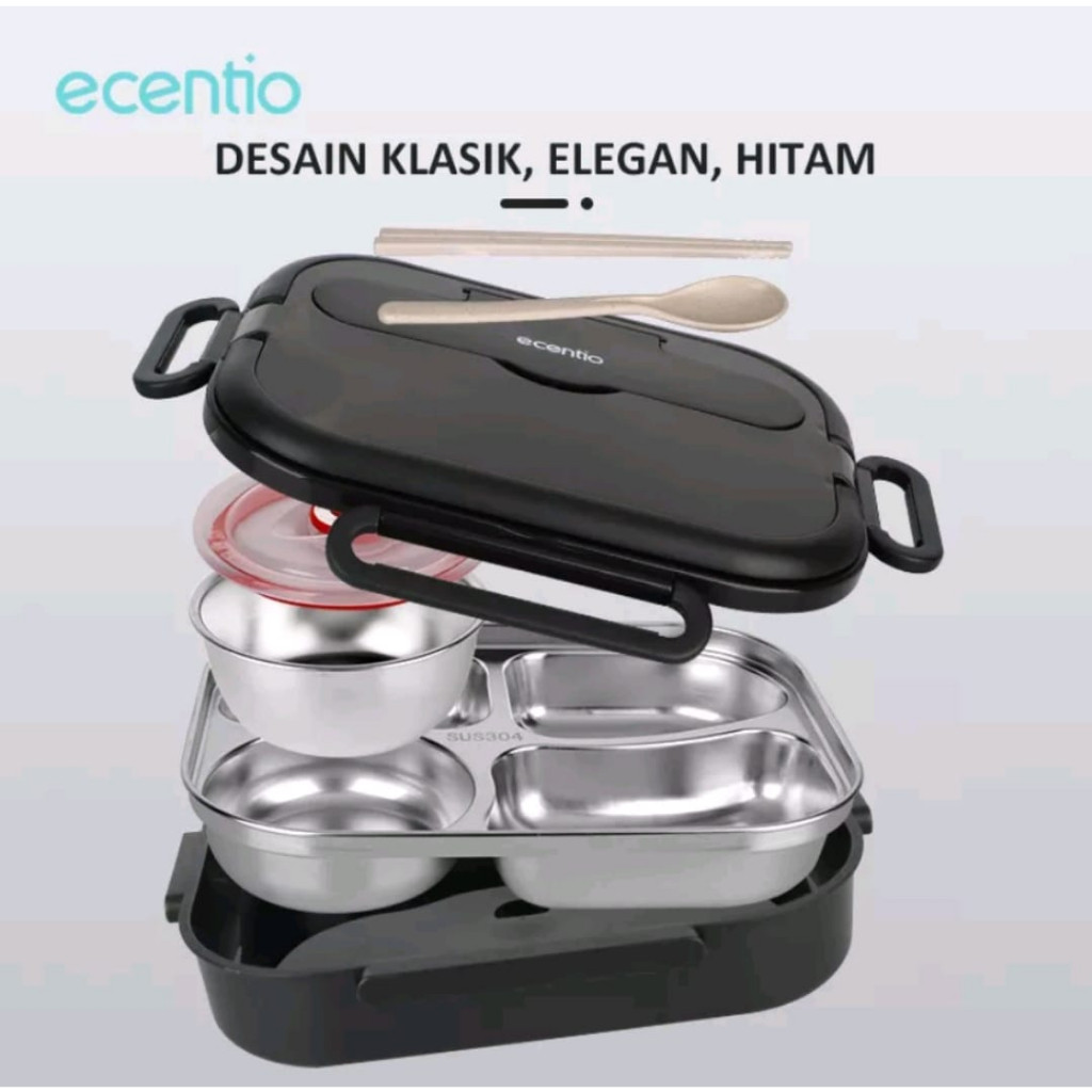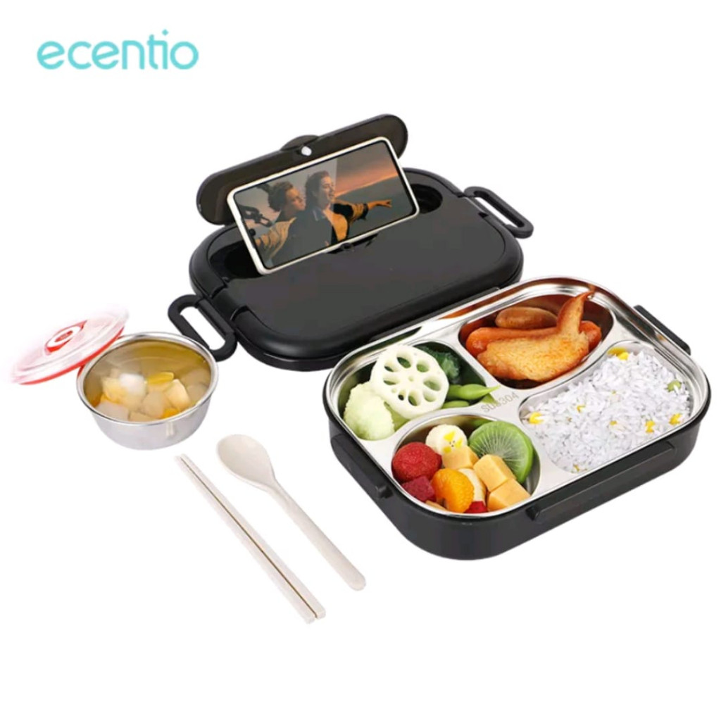 Ecentio Lunch Box 1000Ml Stainless 304 Sekat 4 Anti Tumpah Free Sendok Sumpit & Lunch Bag