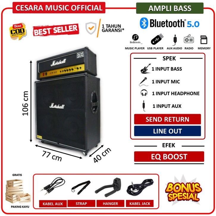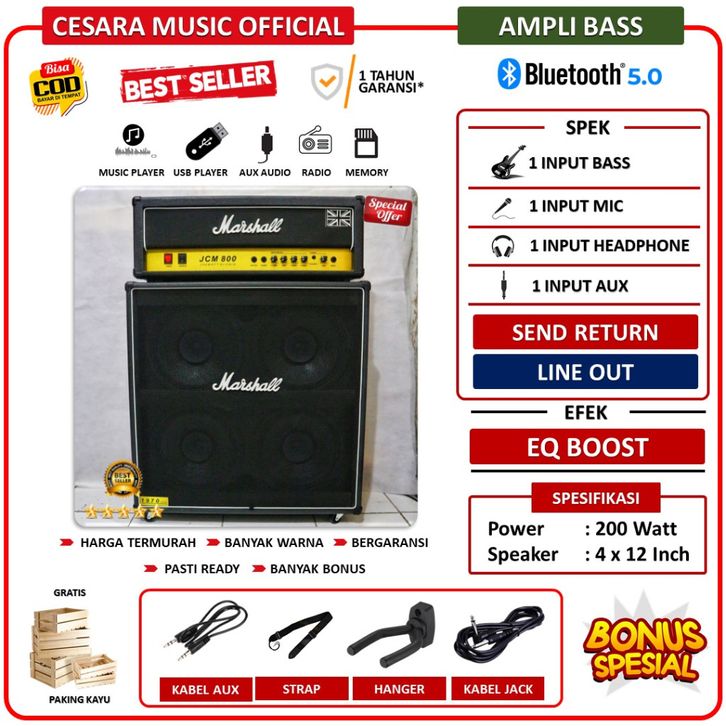 Ampli Bass & Gitar 4x12 Inch Bluetooth Bisa untuk Karaoke 3 Input Head Cabinet Bergaransi