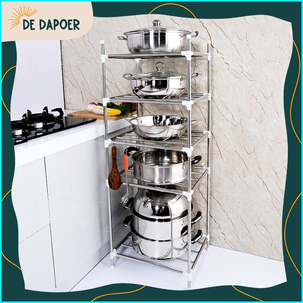 Rak Dapur Rak Panci Stainless Steel Tempat Penyimpanan Alat Masak Wajan Spatula 5 Susun