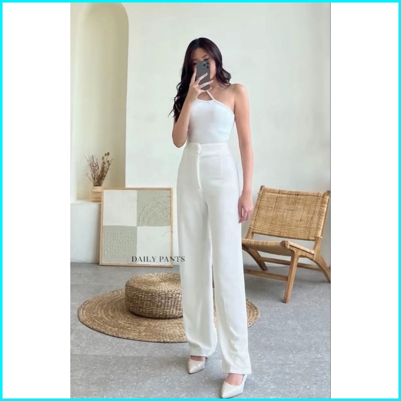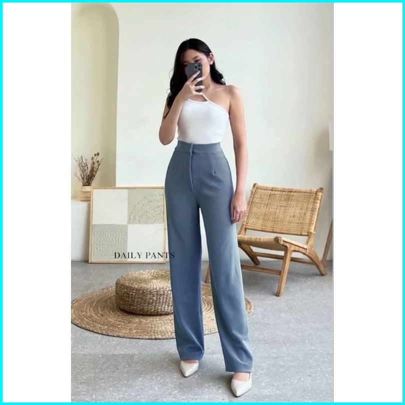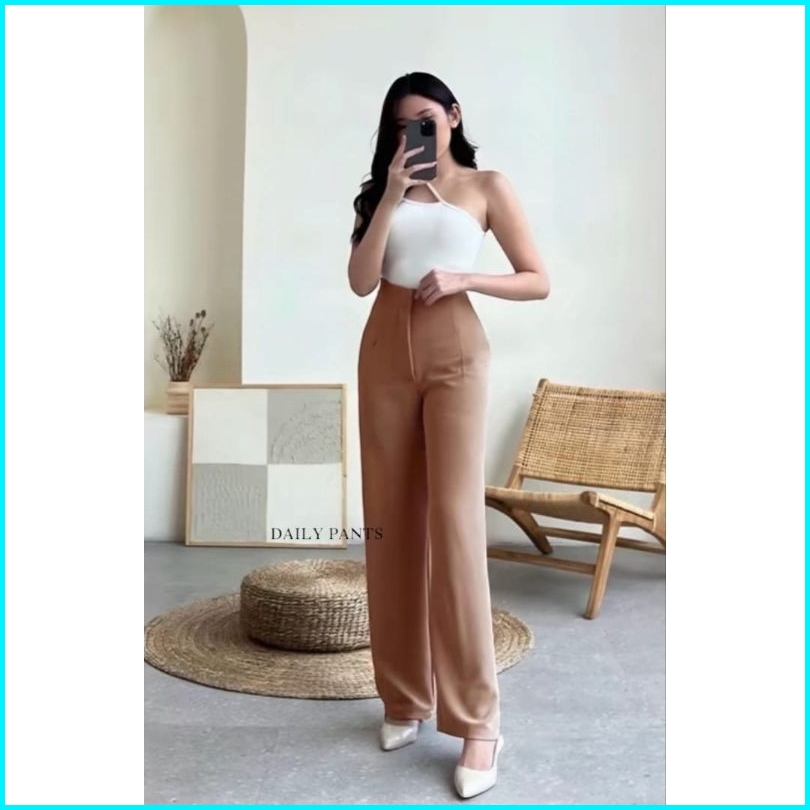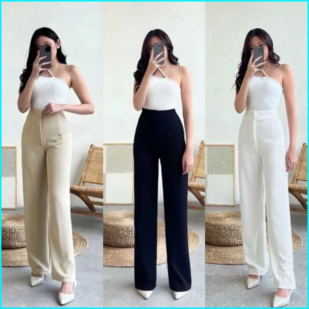 Cozie Pants Rib Knit Premium Highwaist Kulot Loose Pants Celana Wanita Anti Kusut