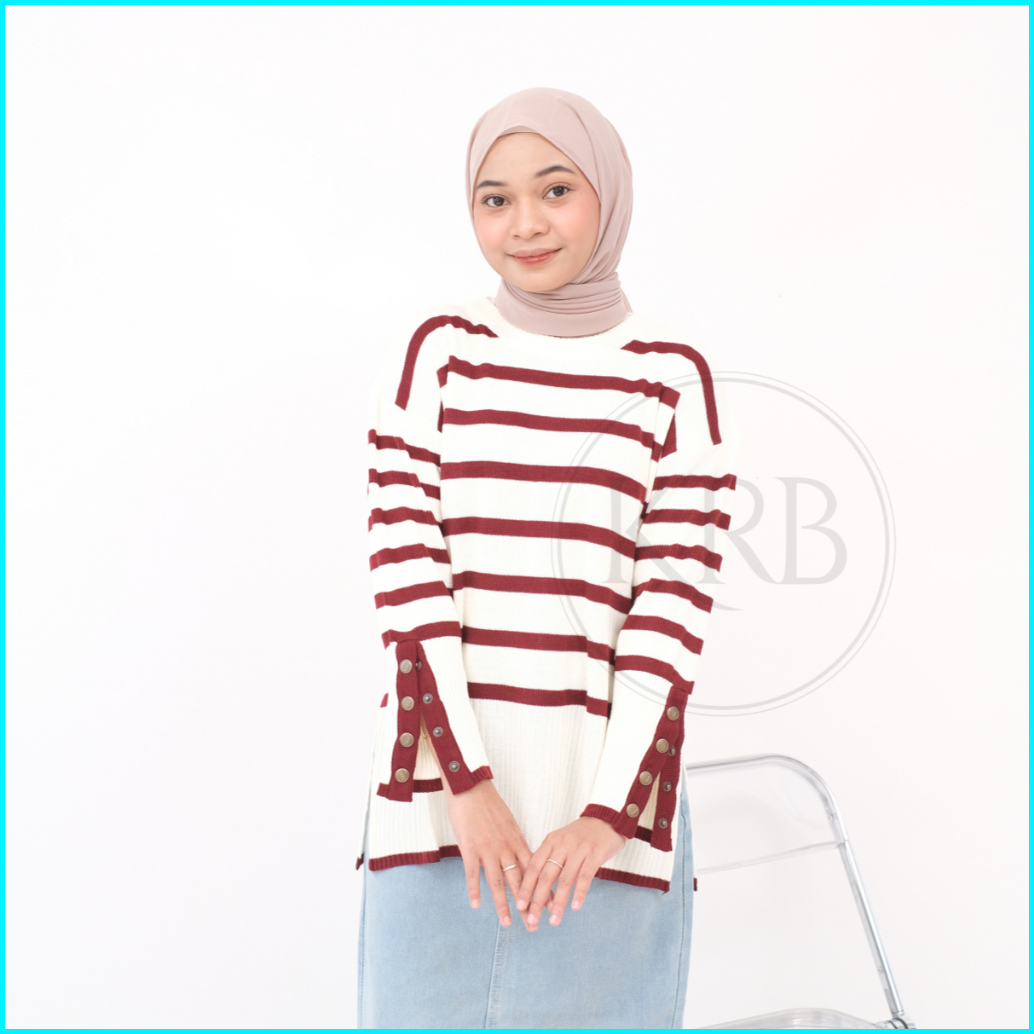 Krb Blouse Inara Kancing Stripe Aktif Outer Wanita Rajut Atasan Wanita Polet