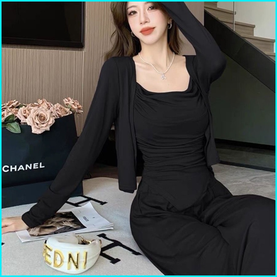 Susana Mall Set Wanita Oneset Lengan Panjang Knit Setelan Casual Basic Strecth M623