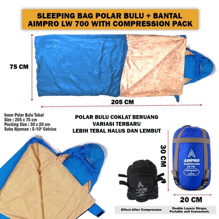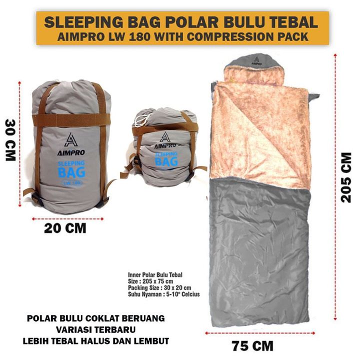 Sleeping Bag Polar Bulu Tebal LW180 SB Bulu Tebal Hangat Nyaman untuk Camping & Outdoor