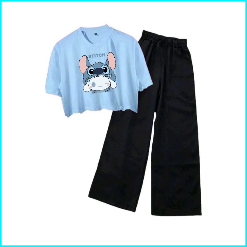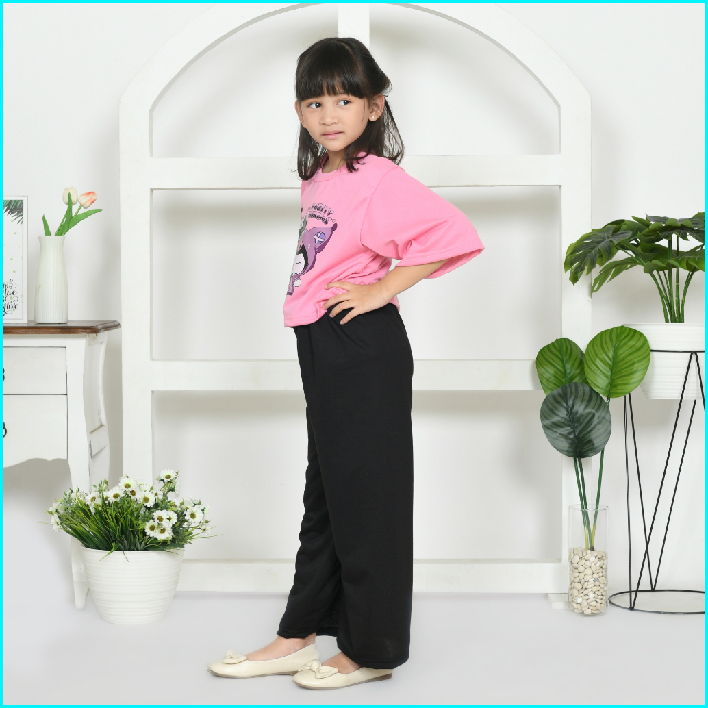 Setelan Oversize Crop Top Kulot Anak Perempuan Karakter Kuromi Cinnamoroll Lotso Stitch Viral Baju Set Cewek 6 8 10 12 1