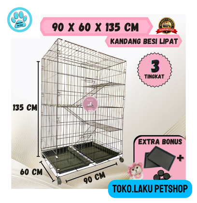 KANDANG KUCING 3 TINGKAT BESI TEBAL UKURAN 90X60X135CM KANDANG HEWAN KANDANG KELINCI KANDANG ANJING
