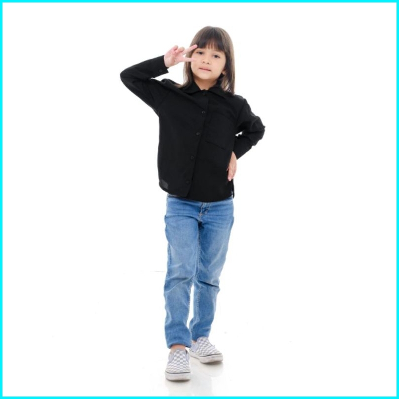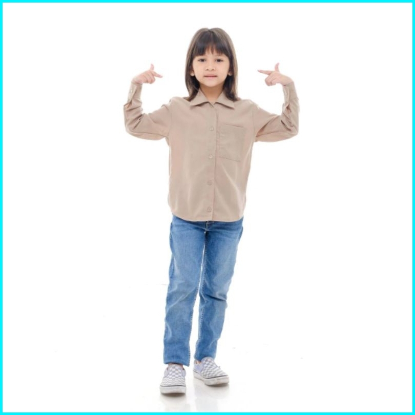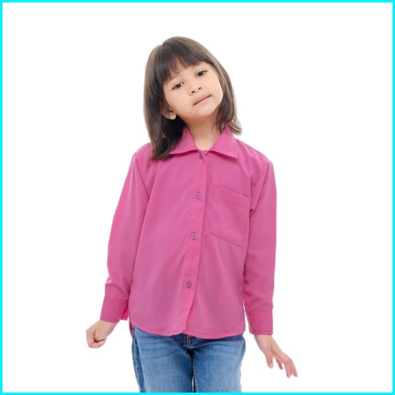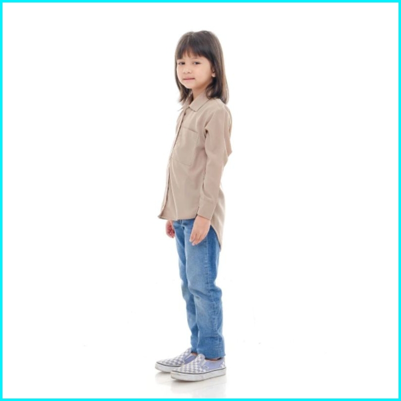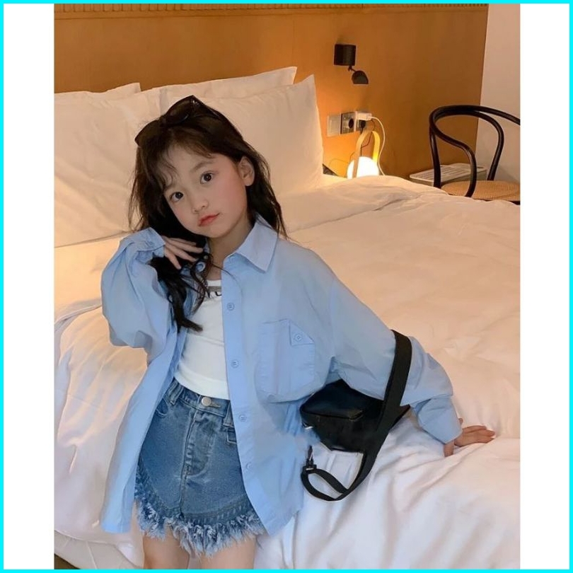 Kemeja Anak Perempuan Korea Style Terbaru Polos Overzize Warna Bahan Katun Linen Premium Usia 7 Sampai 13 Tahun
