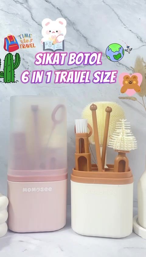 Sikat Pembersih Botol omosee Sikat Botol Portable Sikat Botol 6IN1 Travelling Multifungsi Pembersih Botol Silikon XH053