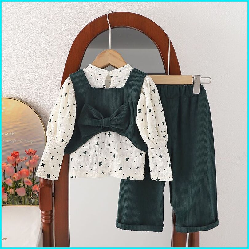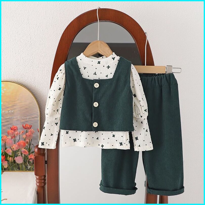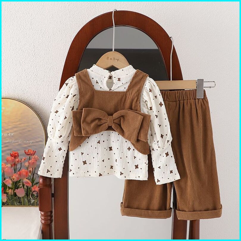 Kf Cat Setelan 3 In 1anak Perempuan Lengan Panjang Katun Celana Panjang Korean Style Usia 1-4 Tahun