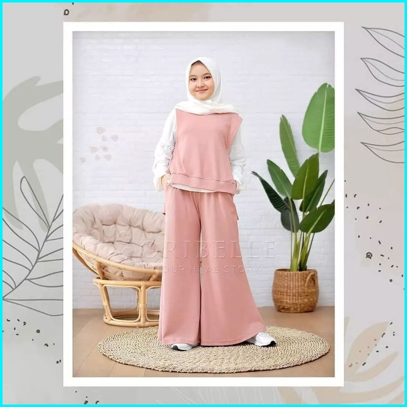 Baju Setelan Anak Perempuan Usia 10 11 12 13 14 Tahun Sherina Set 3in1 Matt Crinkle Airflow Setcel Remaja Tanggung Kekin