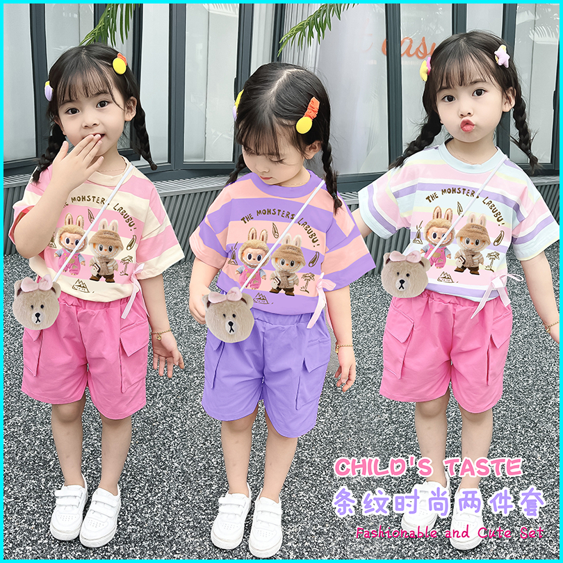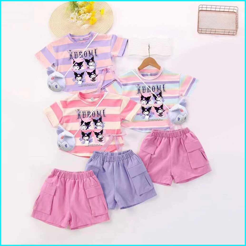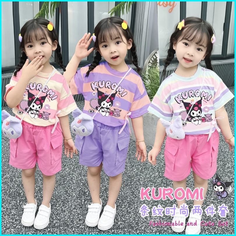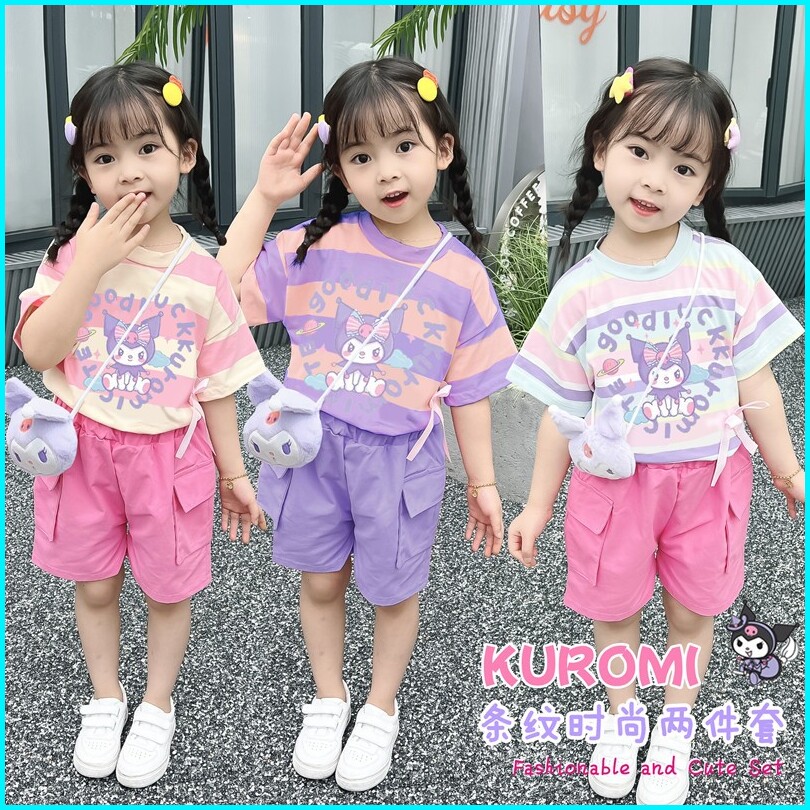 Baju Setelan Labubu Setelan Baju Anak Perempuan Import Motif Kuromi Bahan Katun Bonus Free Tas Baju Anak Kuromi Setelan