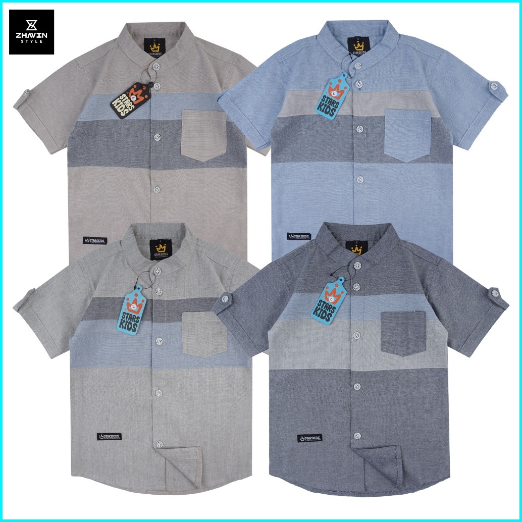 Kemeja Anak Laki-laki Lengan Pendek Usia 1-12 Tahun Bahan Katun Oxford
