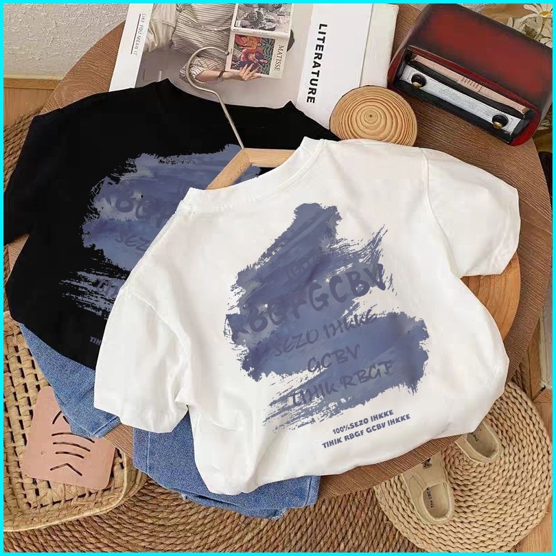 Dailyway Korean Style Kaos Putih Anak Perempuan Baju Anak Laki Laki Anime Kartun Pattern Kaos Baju Anak Cewek Umur 1 12