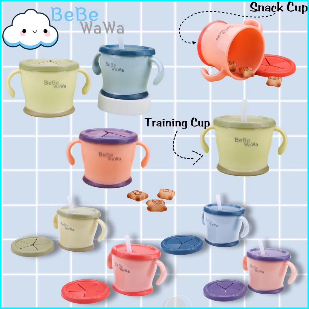 Bebewawa 2in1 Training Straw Cup Snack Cup Cup De Straw Training Mug Early-age Training Mug Gelas Bayi Belajar Nyedot