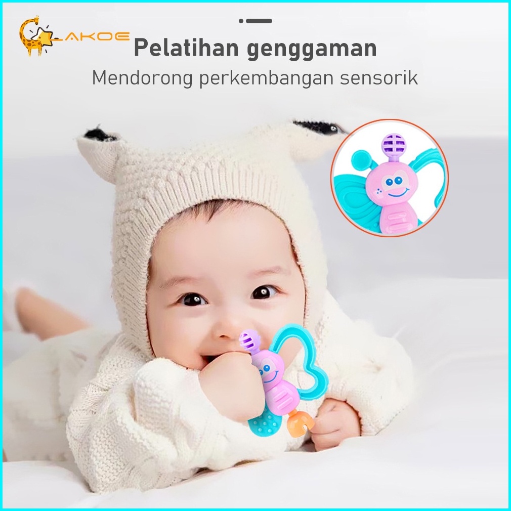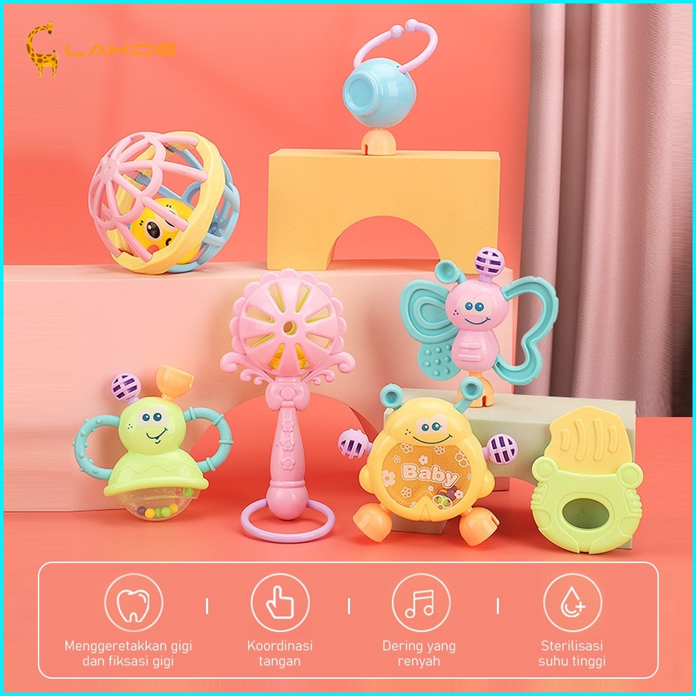Lakoeofficialmall Mainan Kerincingan Bayi Set Mainan Gigitan Rattle Teether Bayi