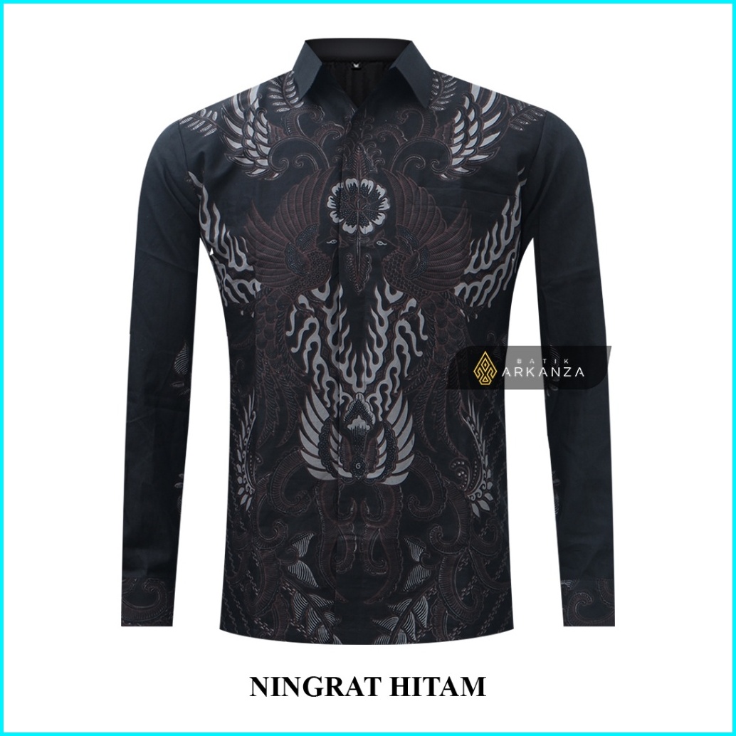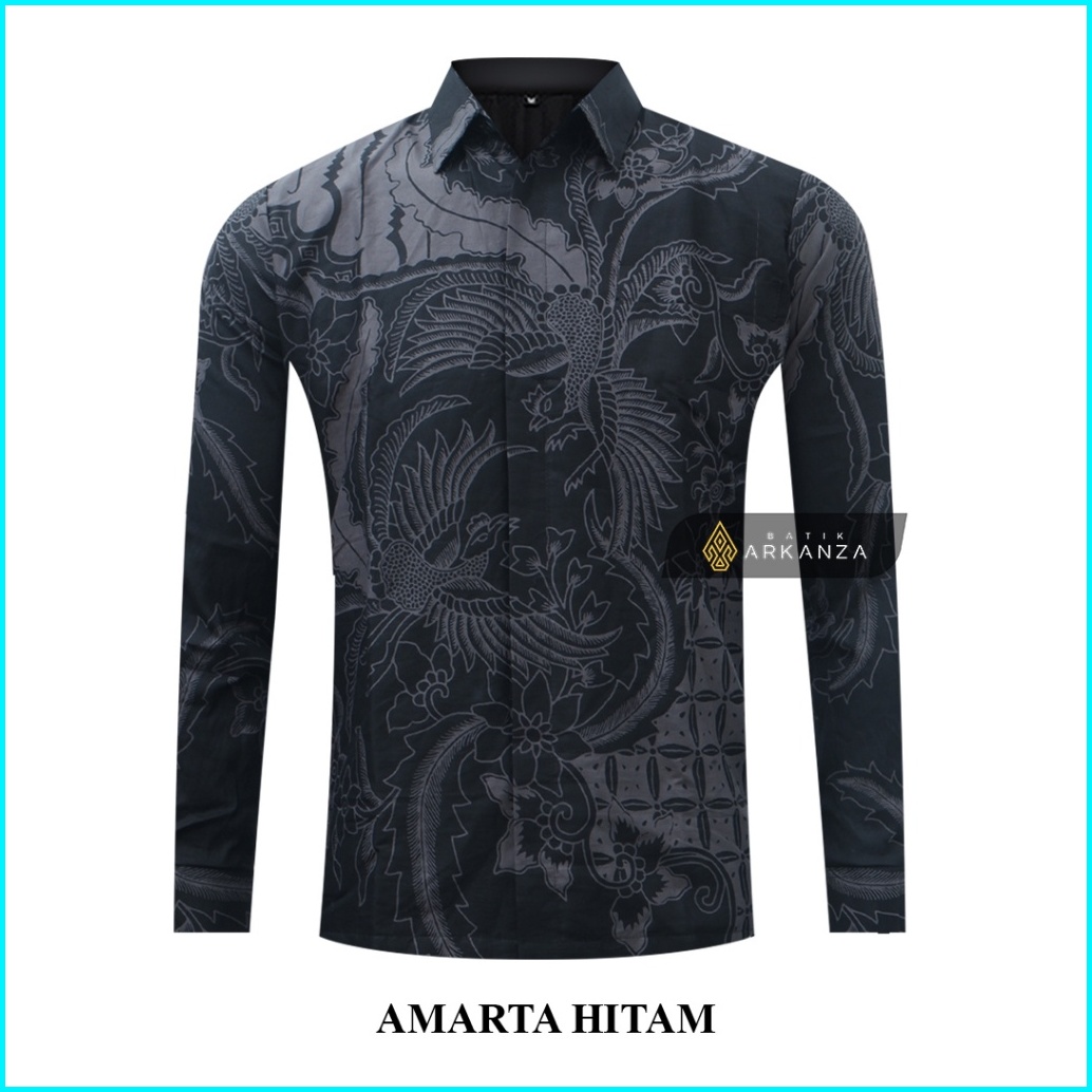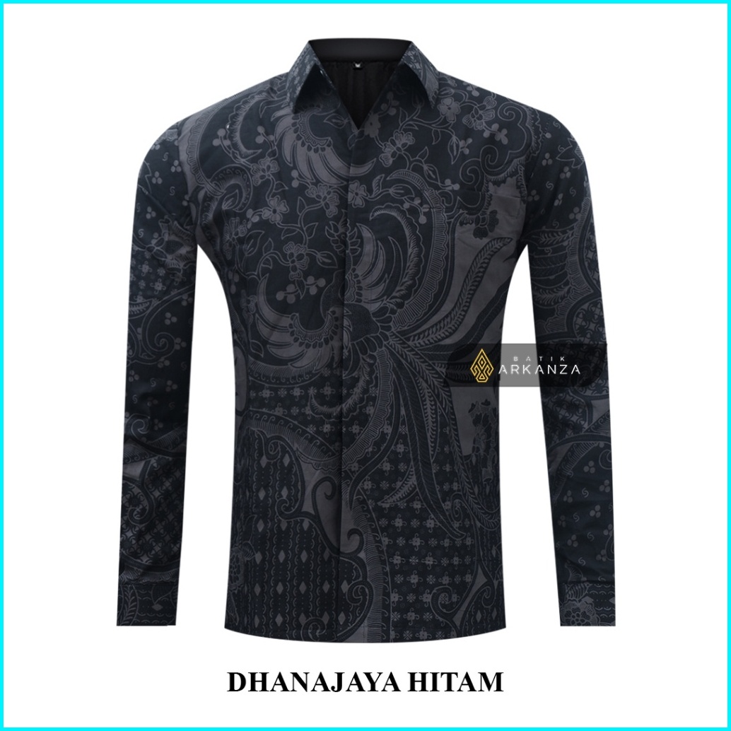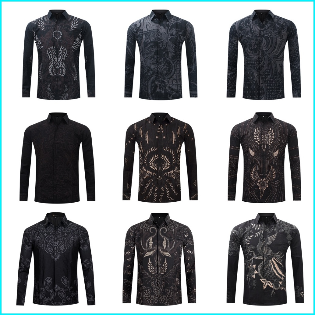 Arkanza Store Warna Hitam Kemeja Batik Pria Cowok Laki Laki Slimfit Full Lapis Furing Lengan Panjang Original Asli Mix S