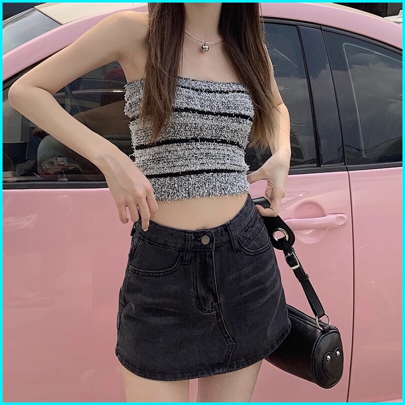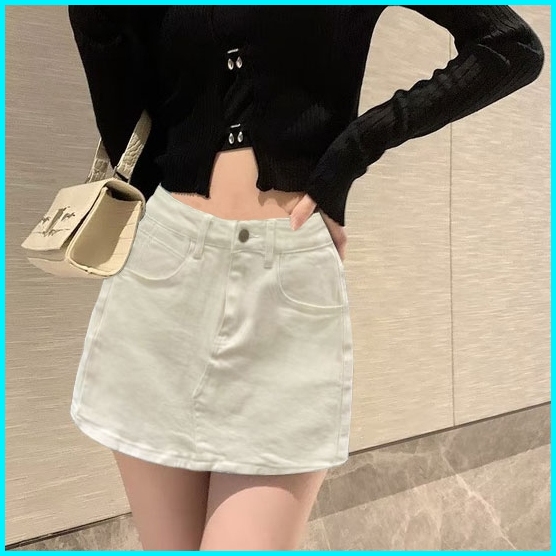 S 6xl Rok Denim Anti Terpapar Seksi Pinggang Tinggi Wanita Rok A-line Pelangsing Serbaguna Gaya Korea