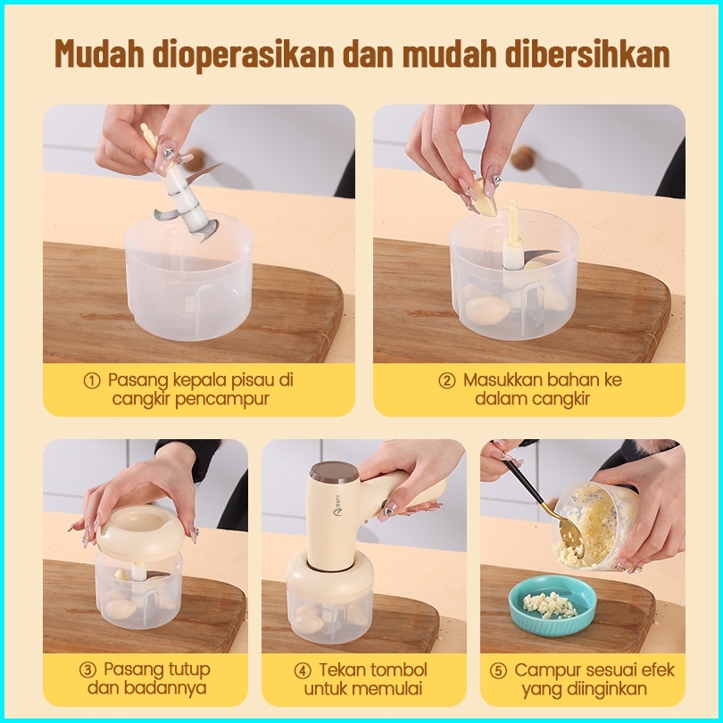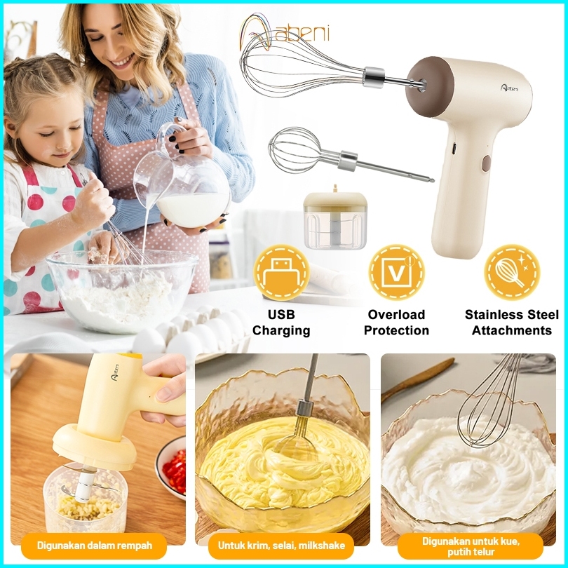 Abeni Blender Mixer Mini 3in1 Usb Portable Hand Mixer Elektrik Mikser Pengaduk Adonan Telur Chopper Mini Food Processor