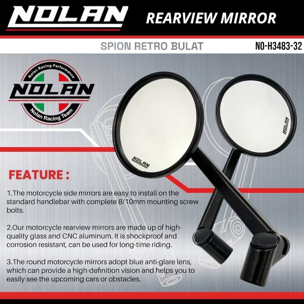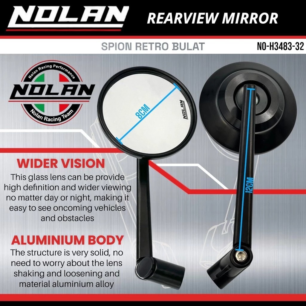 NOLAN Spion Retro Bulat V2 CNC tipe panjang FILANO FAZZIO STYLO SCOOY FINI VESPA DLL UNIVERSAL MOTOR
