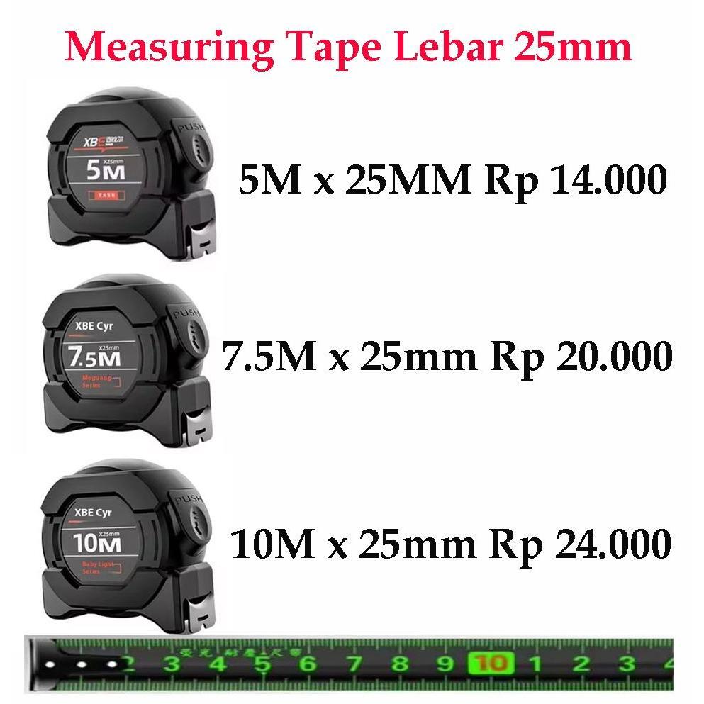 Meteran Pita Pengukur Tukang Baja Fluoresensi 5-10M Fluoresens 5 meter 7.5 meter 10 meter