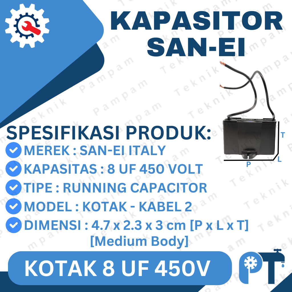 KAPASITOR 8UF 450V SANEI KOTAK CAPACITOR SAN-EI 8 UF MIKRO 450 VOLT | CAPASITOR POMPA AIR