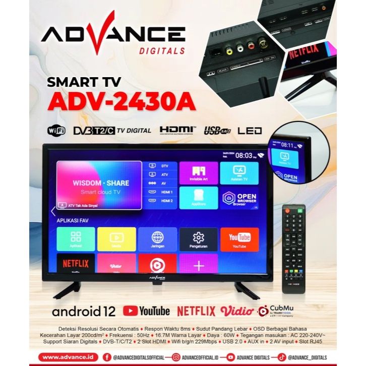 ADVANCE LED TV ANDROID 24 INCH 2430A / ANDROID TV LED 24" DISKON