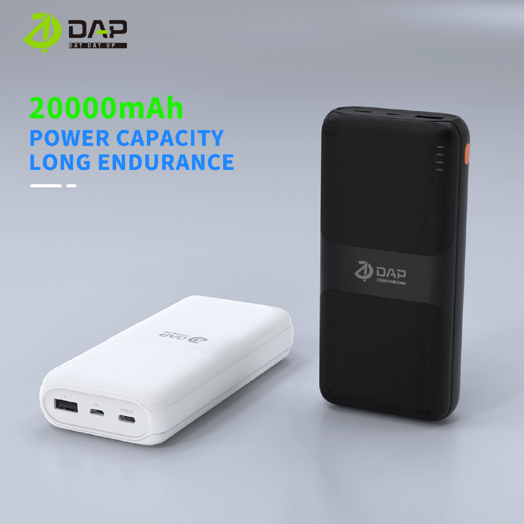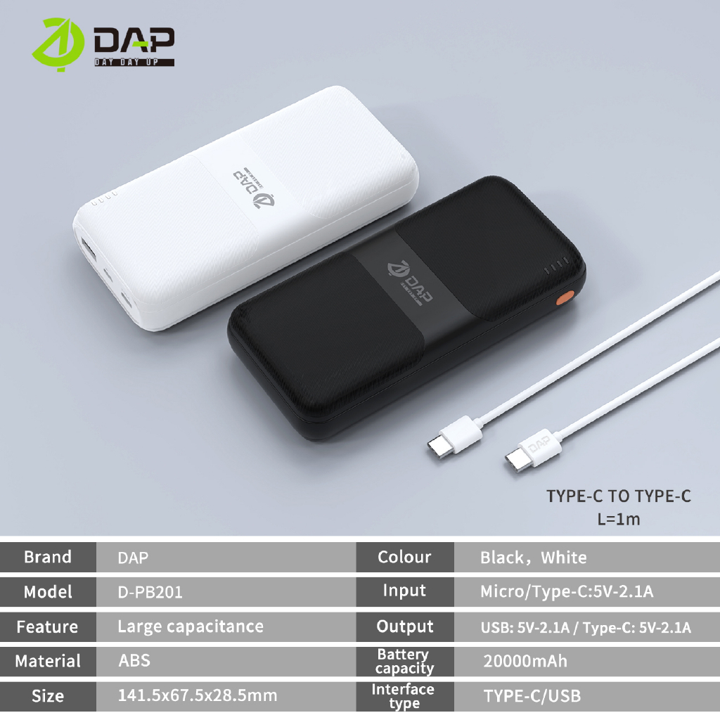 Powerbank DAP 20000mah D-PB201 2.1A Dual Input Port Type C & Micro USB Powerbank Bertenaga Large capacity - Garansi Resm