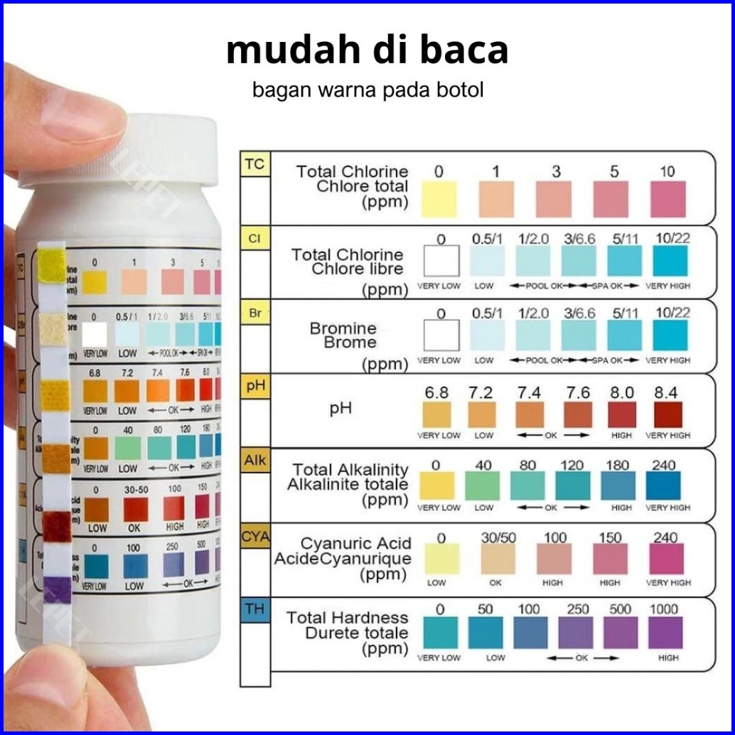 Lepet Pool Spa 7 In 1 Test Strips Total Chlorine No Chlorine Total Alkalinity Acid Ph Litmus Paper