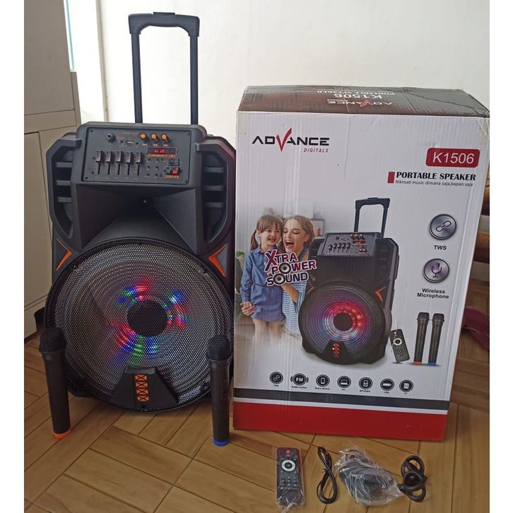 Speaker Advance K1506 K1503 K1508 K1504 Bluetooth 15 inch 2 Mic Wireless /speaker karaoke oke 2 mic PROMO