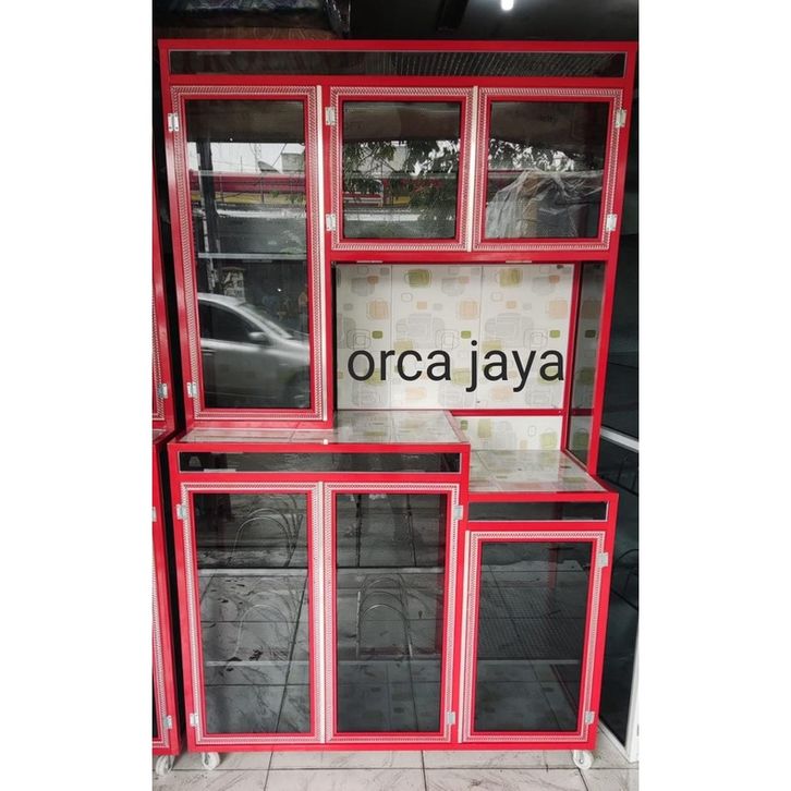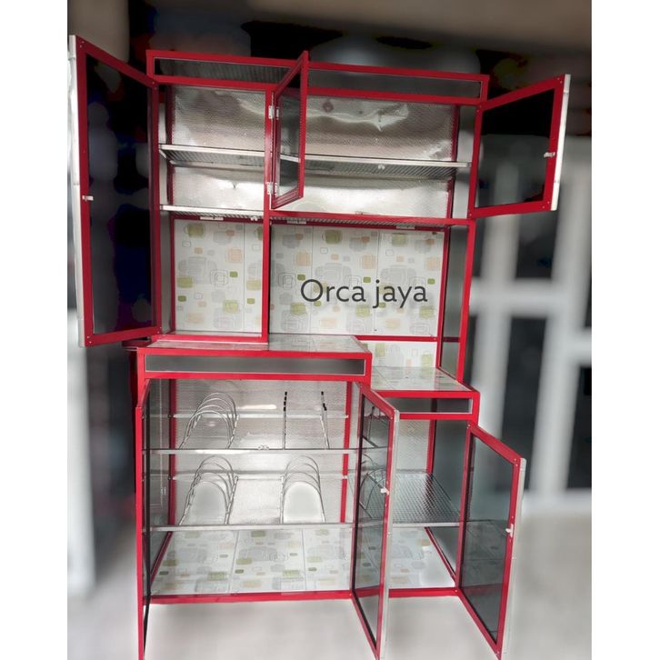 RAK PIRING 3 PINTU TIANG HOLO ULIR / RAK PIRING JENDELA GENDONG (KACA RIBEN)