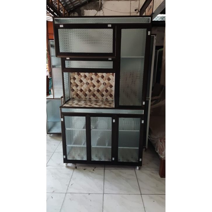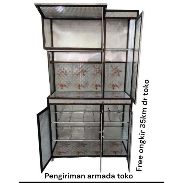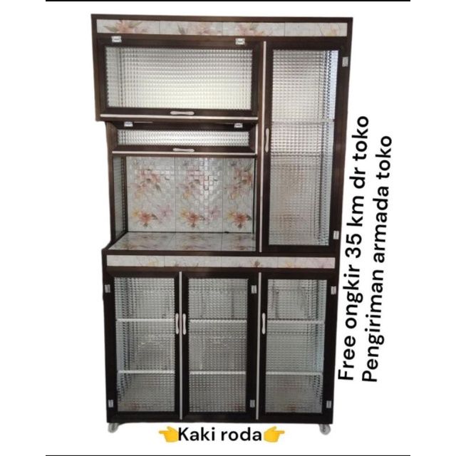 Rak Piring Alumunium 3 Pintu Super + Roda CA tanpa kunci