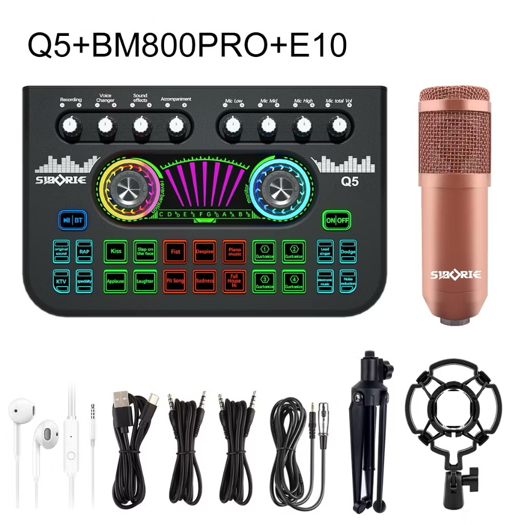 Siborie【Free headset】Q5+BM800PRO+E10 paket lengkap soundcard microphone headset full set